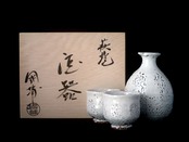 上品で美しいデザインの萩焼 國輔窯 酒器セット(カイラギ)1です。熟練の職人が一つ一つ丁寧に手作りしたこのセットは、使いやすさを考慮しつつ、酒を引き立てる美しいフォルムが魅力です。徳利とおちょこの組み合わせは、特別な時間を演出し、日常使いはもちろん、大切な方への贈り物にも最適です。インテリアとしても、落ち着いた色合いが空間を引き立てるアイテムとなります。ぜひ、この特別な酒器セットをお手元にお迎えください。
